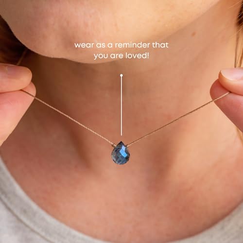 • I LOVE YOU NECKLACE. London blue teardrop cut glass crystal necklace that is a beautiful touchstone reminder "loved you yesterday, love you still, always have, always will." Featuring highly faceted glass crystal that refracts light and emits beautiful color and sparkle. Our crystals emphasize the healing properties of color therapy. Wear it as a daily reminder of your Intention or gift it to a friend who is in need of inspiration.