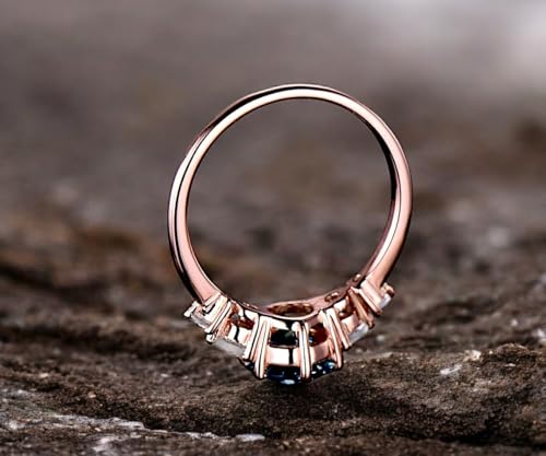 More information about Round Alexandrite Engagement Ring – Rose Gold Solitaire Ring with Moonstone Accents – June Birthstone Promise Ring for Women – Dainty Gemstone Bridal Jewelry