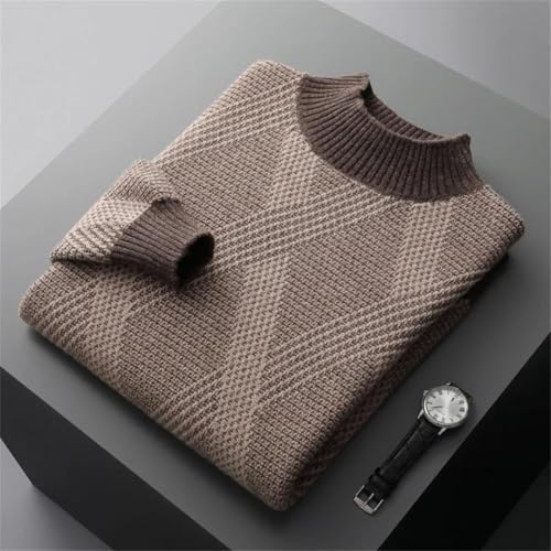 Men's Wool Semi-High Collar Seats with Textured Stripes for Business Double Thick Knitted Sweater 1