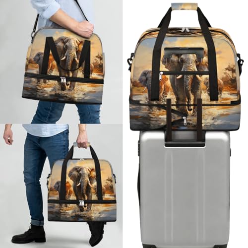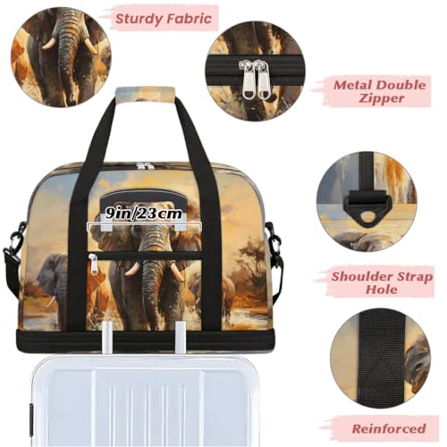 HOT ! Travel Duffel Bags Retro Africa Elephant Foldable Weekender Bags for Women with Shoes Compartment Waterproof & Tear Resistant Carry on Overnight Luggage Duffel Bag Shoulder Sports Tote Bag,B-242