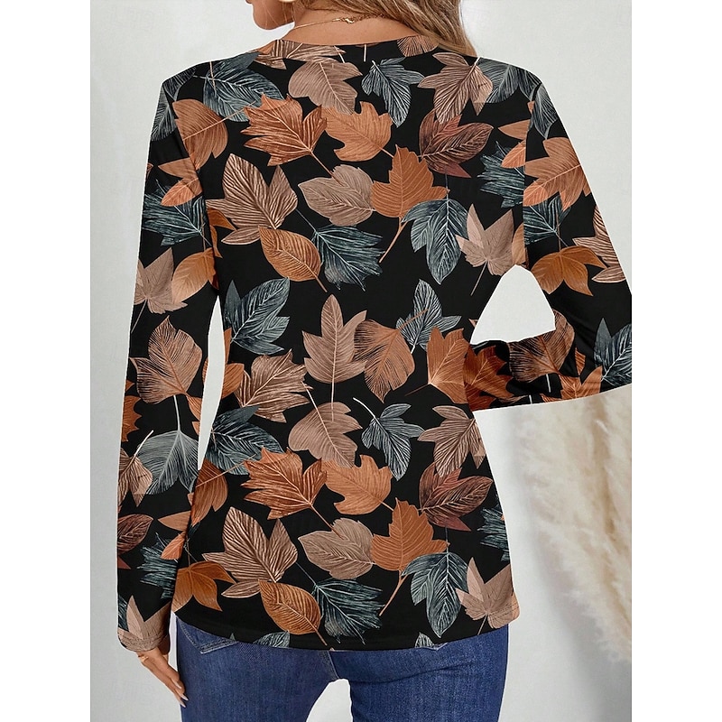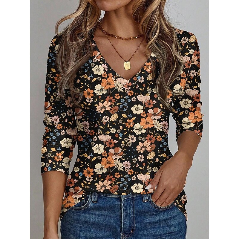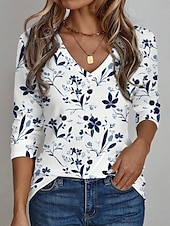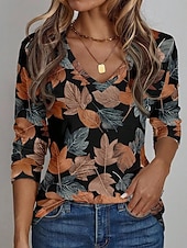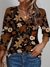More information about Women's T Shirt Floral Graphic Plants Vintage Stylish Classic Long Sleeve V Neck Regular Tops Daily Print Blue Orange Brown Khaki Spring Fall Winter