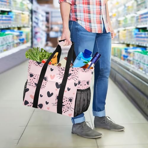 Nander Cute Leopard Print Foldable Tote Bag Waterproof Sandproof Women Beach Bag Handbag Gym Bag Travel Shopping Bag 7