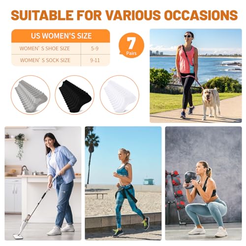 Heatuff 7 Pairs Ankle Socks for Women Athletic Running Cotton Low Cut Sports Tab Socks 7