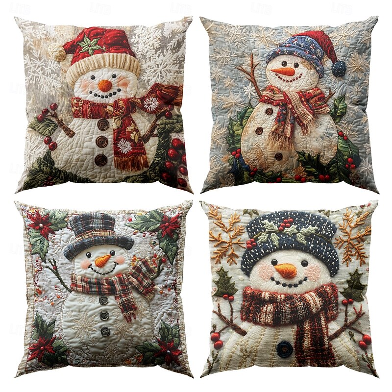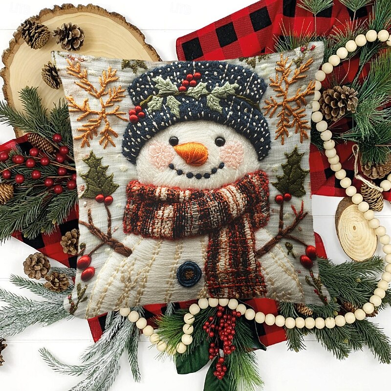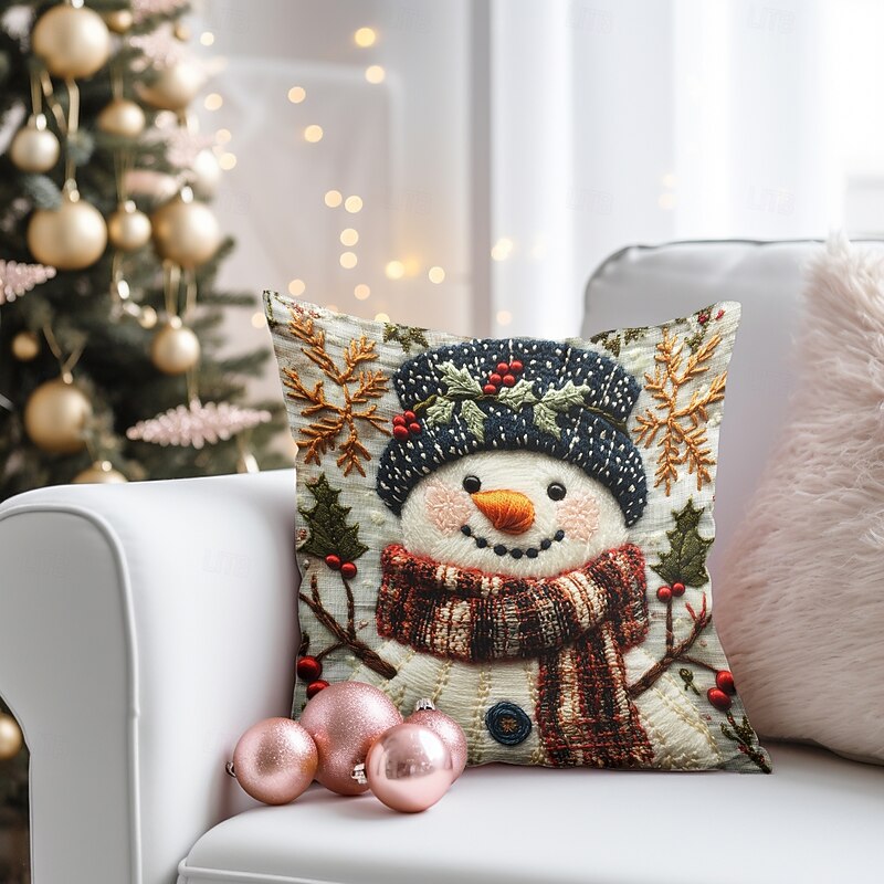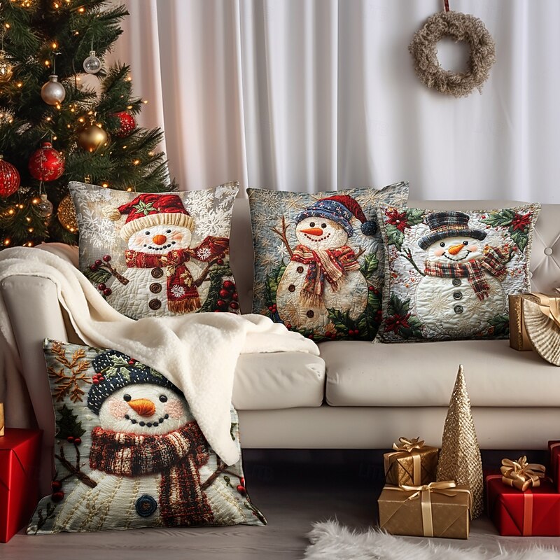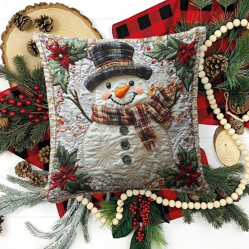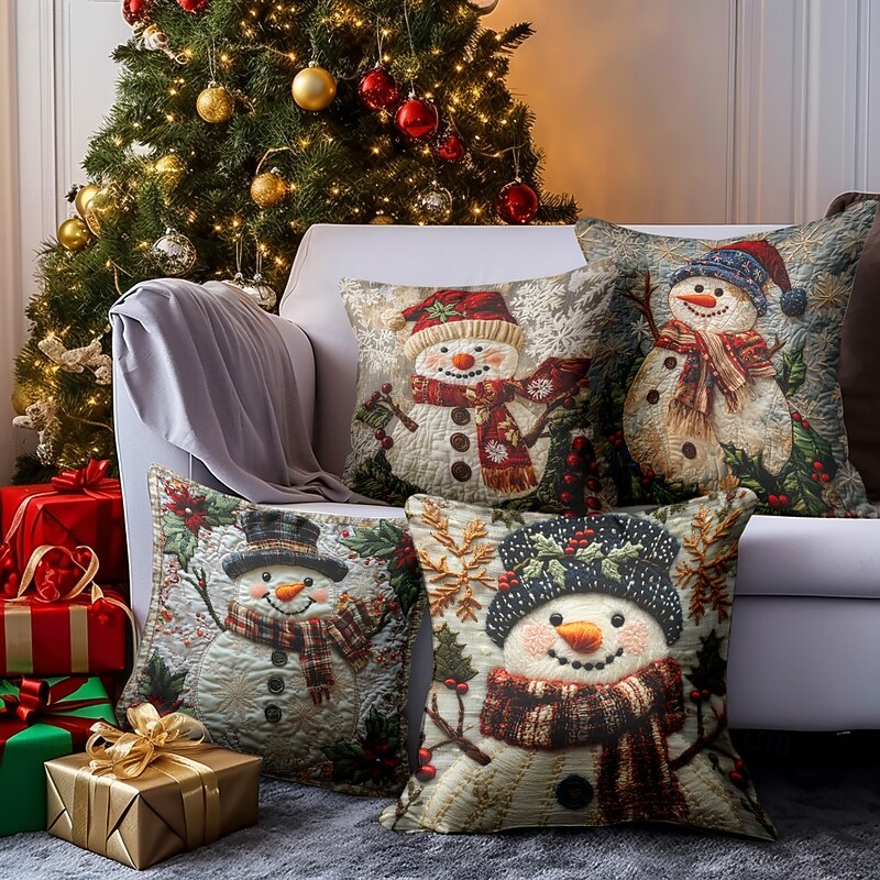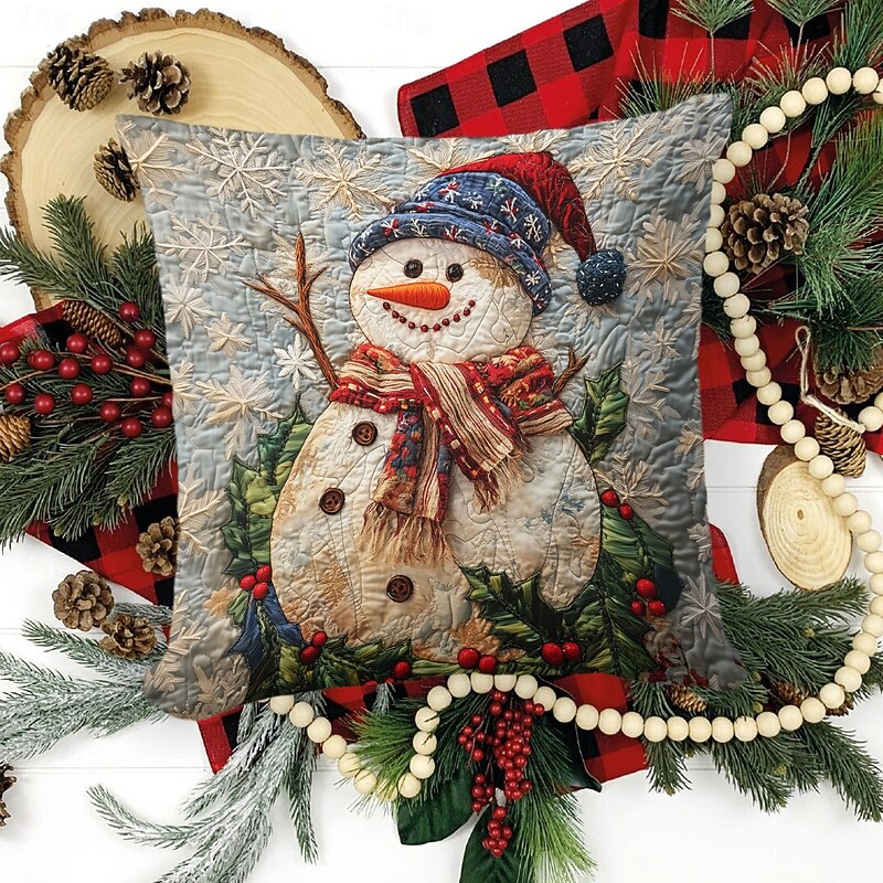 Christmas Decorations Decorative Toss Pillows Cover 1PC Quilting Snowman Soft Square Cushion Case Pillowcase for Bedroom Livingroom Sofa Couch Chair