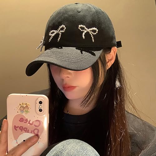 SHU GE Baseball Cap,Dance Baseball Hat for Girl Beaded Bowknot Hat Windproof Baseball Hat Spring Sun Hat Outdoor Cycling Hiking Hat 1