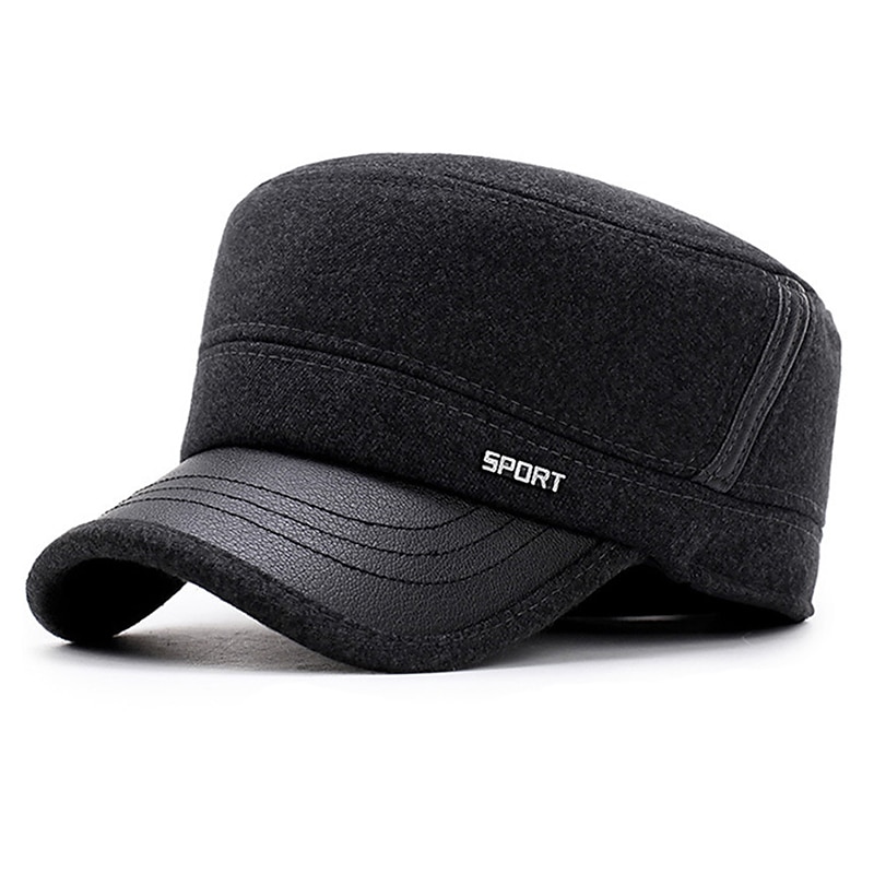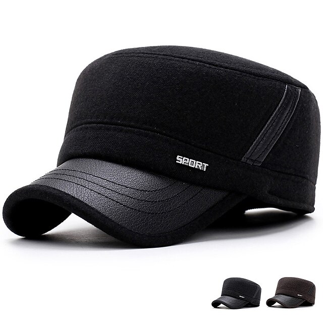 More information about Men's Flat Cap Baseball Cap Winter Hats Military Cap Cadet Hat Black Coffee Cotton Travel Outdoor Vacation Plain Windproof Warm