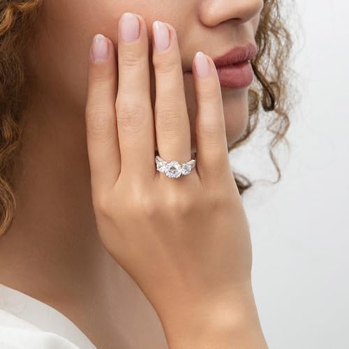 • 925 STERLING SILVER: This 3-stone promise engagement ring is crafted with fine solid sterling silver, stamped 925. Rhodium plated for enhanced durability and tarnish resistance.