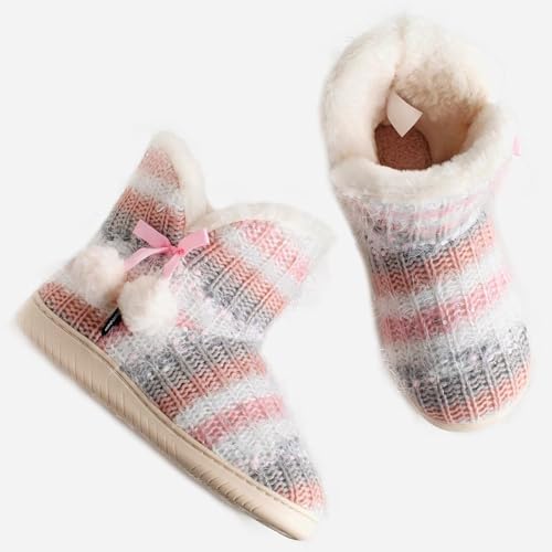 Slipper Boots Women Knit Plush Lining Winter House Shoes Memory Foam Indoor Outdoor 7