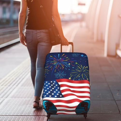 Travel Luggage Cover 4th Of July American Flag Fireworks Fashion Washable Baggage Suitcase Protector Fit For Luggage X-Large 4