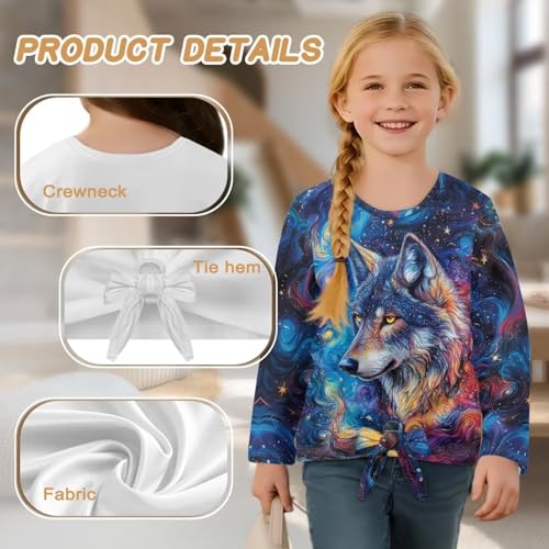 Long Sleeve Shirts for Girls Cute Trendy Tee Shirt Casual Tie Front Tops Kids Fall Clothes 5-12Y 2