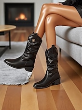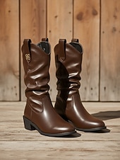 More information about Women's Mid-Calf Boots with Soft Wide Shaft, Low Block Heel and Decorative Metal Accent, Casual Daily Comfort Style for Women's Urban Streetwear and City Outfits