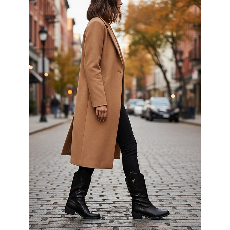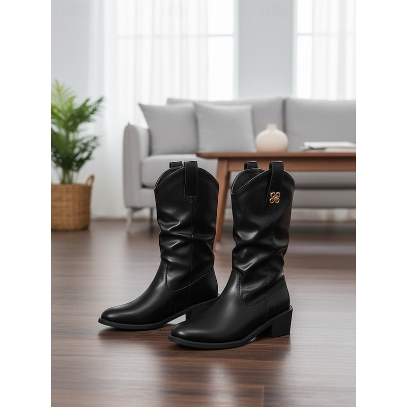 Women's Mid-Calf Boots with Soft Wide Shaft, Low Block Heel and Decorative Metal Accent, Casual Daily Comfort Style for Women's Urban Streetwear and City Outfits 1