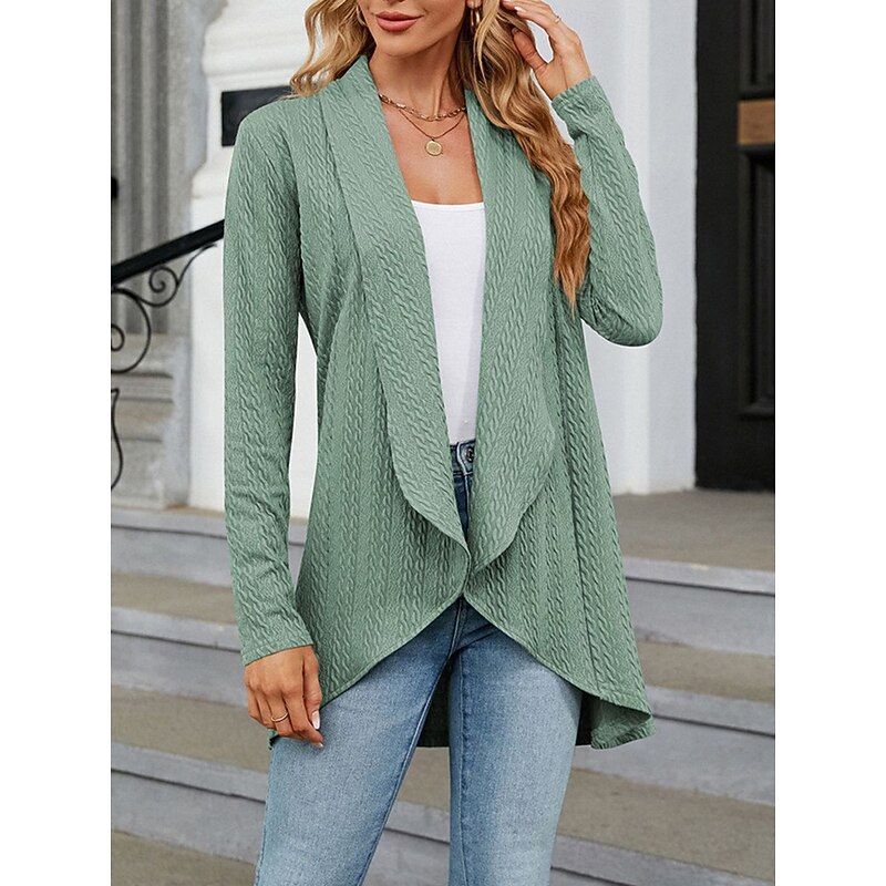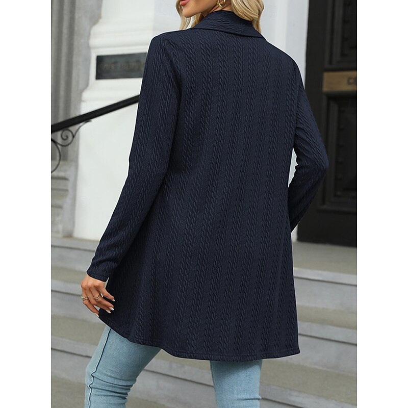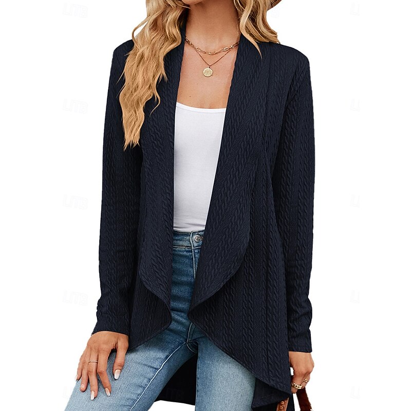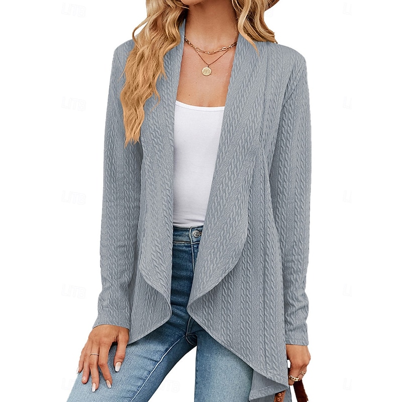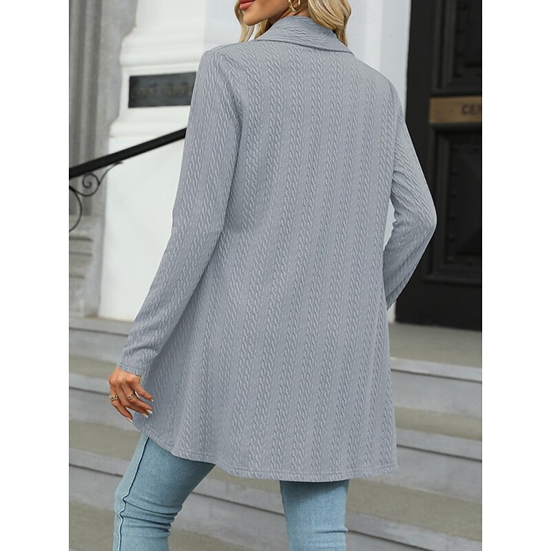 : Crafted from a soft polyester knit, this women's cardigan provides a comfortable, micro-elastic feel perfect for fall and winter. Its ribbed texture and subtle cable-knit pattern add visual interest and warmth, making it an excellent choice for layering.