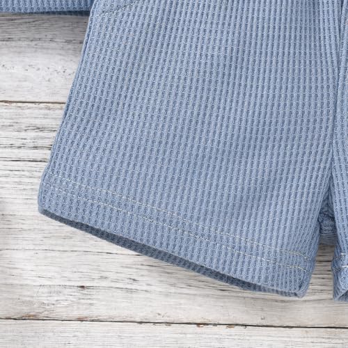 • DESIGN: Baby boy summer outfits, toddler boy waffle outfit, has round neck short sleeve t-shirts with chest pockets and label patches details and solid colored elastic waist shorts with pockets and bows at the waist