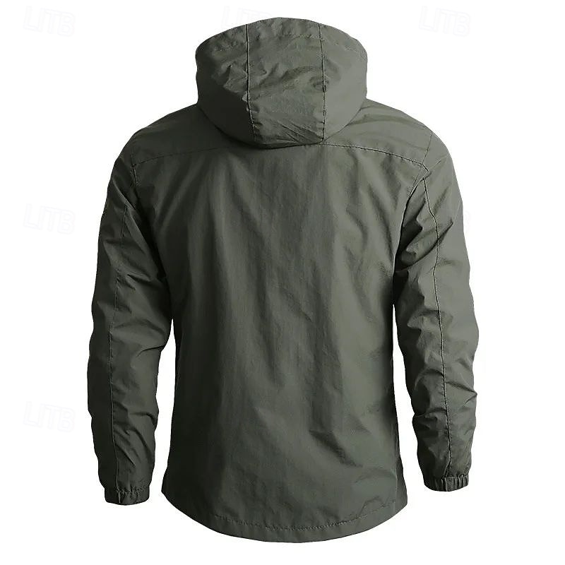 Men's Jacket Raincoat Shell Jacket Waterproof Lightweight Casual Sports Outdoor Camping & Hiking Embroidered Side Pockets Zip Front Fall Winter Hooded Long Sleeve Black Green khaki 1