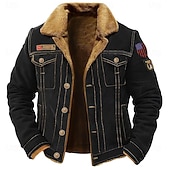 More information about Men's Embroidered US Flag Fleece Jacket Cargo Jacket Sherpa Jacket Tactical Thermal Warm Vintage Outdoor Home Multiple Pockets Winter Coats Fall Winter Fleece Turn-Down Collar Long Sleeve Army Green