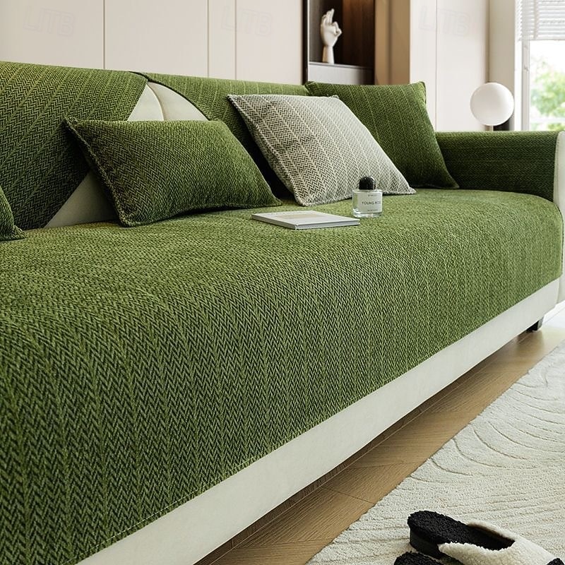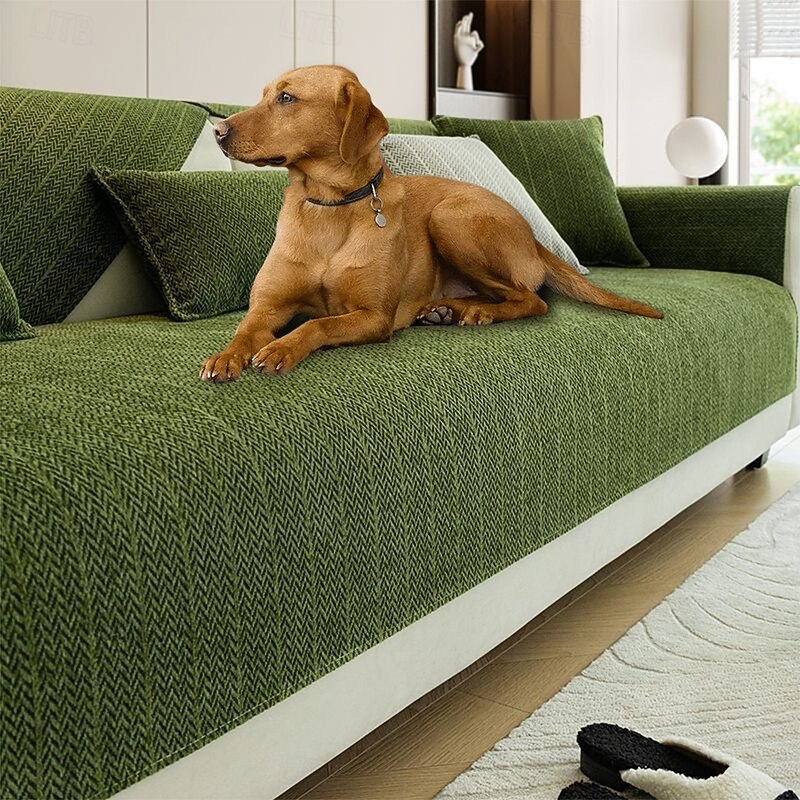 Solid Color Sofa Cover For Dogs Chenille Upgrate Velvet Anti-scratch Herringbone Couch Cover Pet Friendly 1