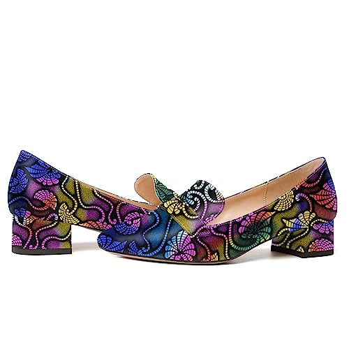 MERRORI Womens Patent Square Toe Slip On Casual Office Chunky Low Heel Pumps Shoes 1.5 Inch 1