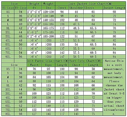 • 【FEATURE】Fabric:Wool fabric;Blazer:Double Breasted,Notch Lapel,Slim Fit Style;Pants:Zippered Fly,Button End.Package includes:Jacket+Vest+Pants,3-Piece Suit,WE DON’T PROVIDE TIE AND POCKET SQUARE.