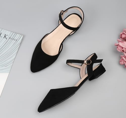 Women's Pointed Toe Low Block Chunky Heels Comfortable Closed Toe Ankle Strap Dress Shoes Party Wedding Pump Shoes 6