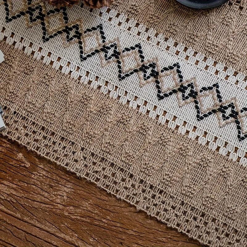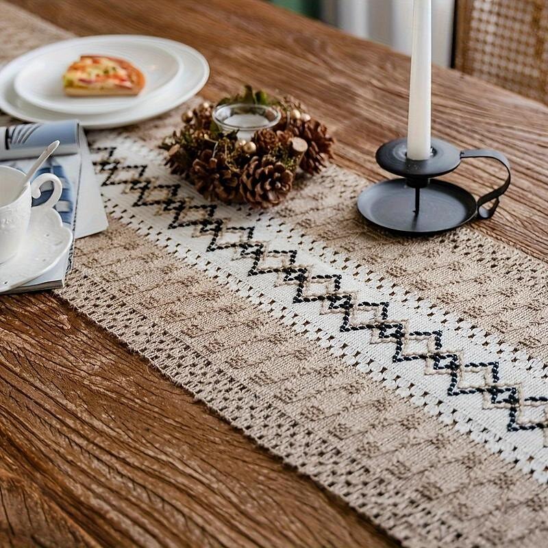 1pc, Bohemian Patchwork Burlap Table Runner - Farmhouse Style Doily for Country Weddings, Bridal Showers, and Dinner Parties - Perfect Home Decor 9