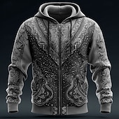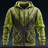 More information about Men's Cowboy Costume Hoodie Jacket Sweatshirt Western Cowboy All Over Print Zip Vacation Streetwear Brown Green Zipper Fall Winter Designer