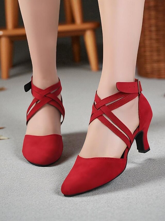 $34.99 - Women's Red Suede Cross-Strap Dance Shoes with Mid-Heel - Professional Latin and Ballroom Performance Footwear 2025. Shop for cheap Latin Shoes online? Buy at lightinthebox.com on sale today!