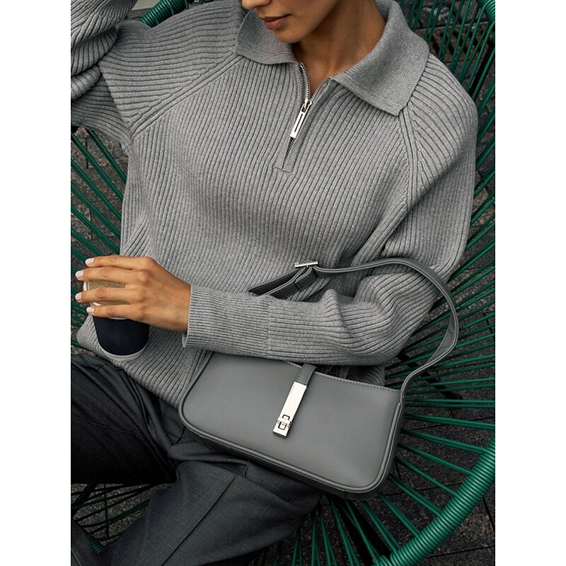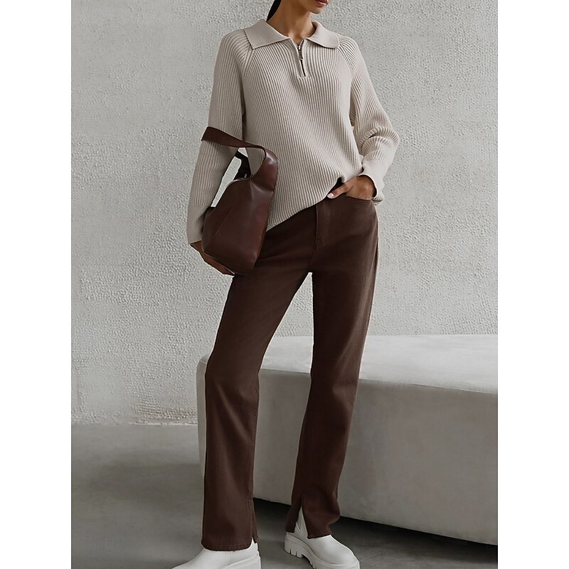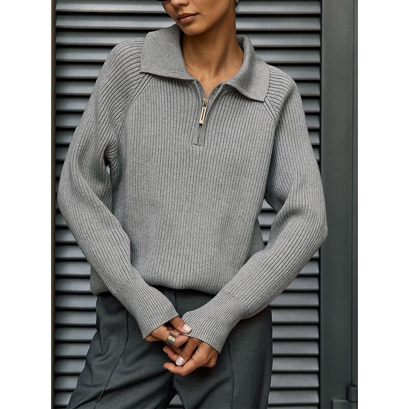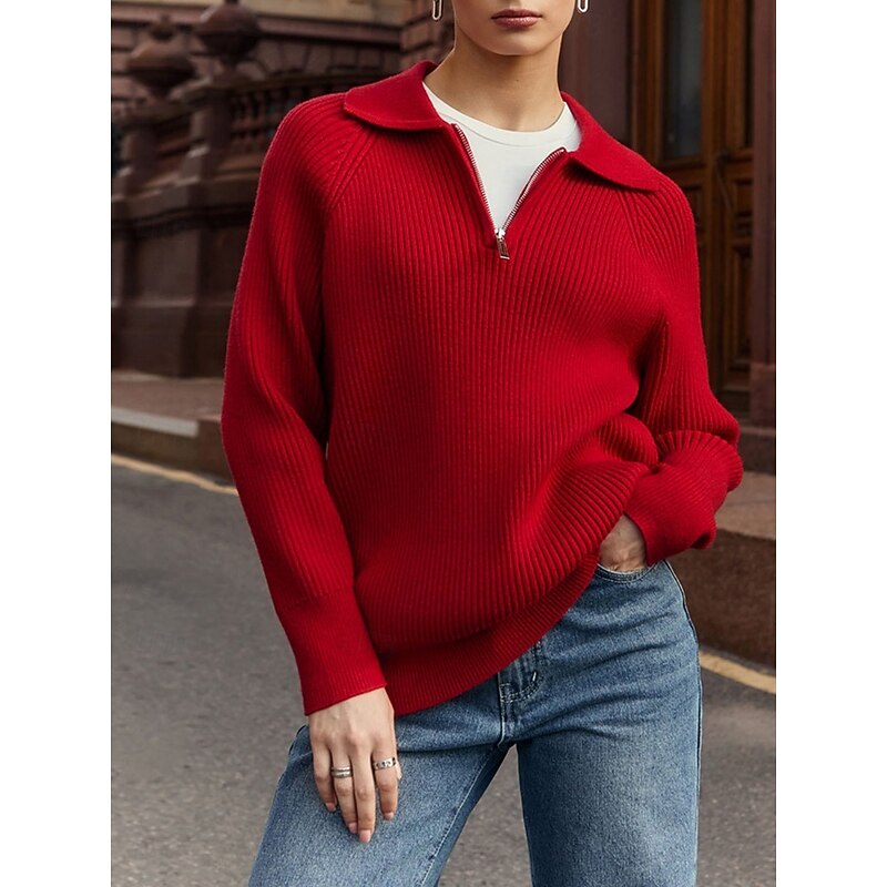 More information about Women's Sweater Casual Soft Pure Color Ribbed Shirt Collar Knitted Long Sleeve Regular Tops Knit Outdoor Daily Weekend Pink Red Fall Winter