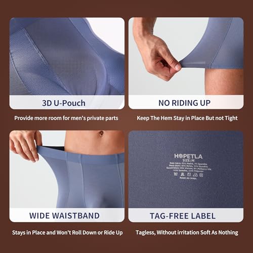 • COMFORTABLE MOISTURE-WICKING MEN’S UNDERWEAR: Crafted from 93% Modal 7% Spandex , offering our guest softness comfortable breathable wearing feeling, breathable feature boxer briefs keep you dry and cool. The moisture-absorbing fabric offers a lightweight feel, perfect for active days or summer lounging