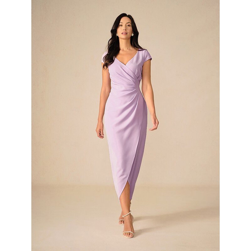 HOT ! Women's Maxi Dress Wrap Dress Elegant Party Formal Wedding Party Wedding Guest Regular Fit Solid Color Short Sleeve V Neck Light Purple Summer Spring Fall