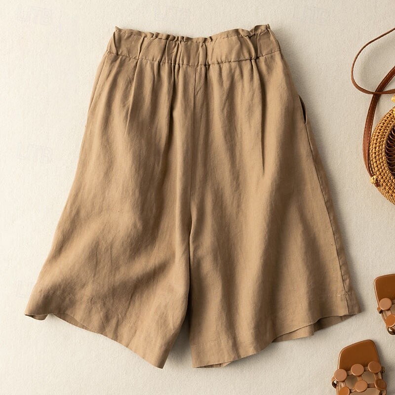 More information about Women's Cotton Linen Shorts Shorts Slacks Streetwear Casual Knee Length Natural Plain Pocket Elastic Waist Outdoor Comfortable Outdoor Vacation Apricot Green Khaki Summer Regular Fit