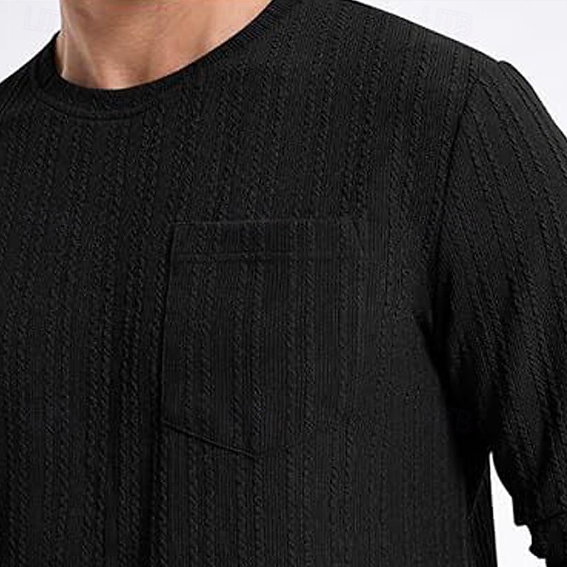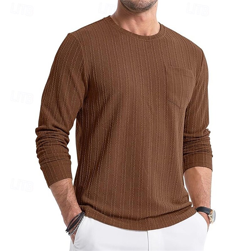 More information about Men's T Shirt Tee Tee Top Long Sleeve Shirt Long Sleeve Crew Neck Spring & Fall Plain Fashion Designer Basic Pocket Jacquard Vacation Street Going out Dark Brown Black White Top Tee for Men