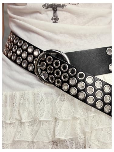 More information about MakeMeChic Women's Faux Leather Round Buckle Belt Grommet Eyelet Punk Vintage Waist Belts