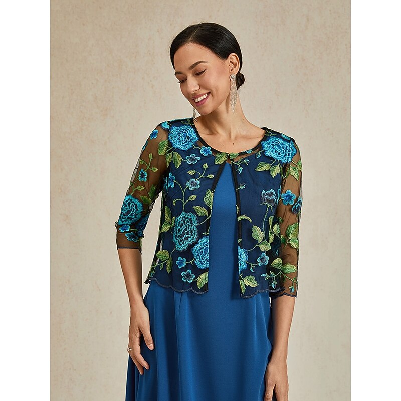 More information about Women's Cardigan Lace Embroidered Elegant Basic Casual Floral Formal Short Crewneck Loose Fit 3/4 Length Sleeve Outerwear Navy Blue Summer Spring
