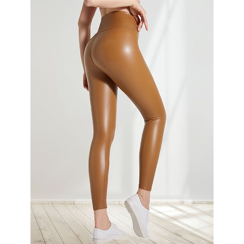 More information about Women's Leather Pants Tights Pants Trousers Fashion Streetwear Full Length High Waist Plain Elastic Waist Outdoor Comfortable Micro-elastic Street Daily Daily Wear Rust Grey Black Dark Navy Spring