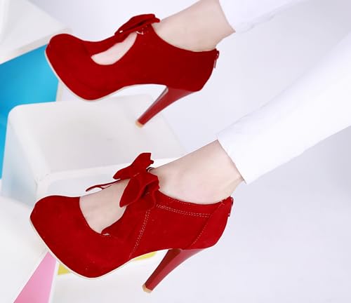 DEERBUNNY Women's Suede Platform IN4 Stiletto Pumps Back Zipper Cute Bows-Knot High Heels Pump Shoe Wedding Party Office Dress Shoes 5