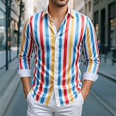 More information about Men's Shirt Satin Shirt Striped Shirt Casual Shirt Button Up Shirt Striped Wedding Vacation Rainbow Long Sleeve Collar Spring & Fall Clothing Apparel