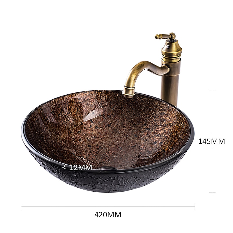 $404.99 - 16.5 inch Bathroom Vessel Sink with Faucet Vintage Brass, Antique Tempered Glass Basin with Pop-Up Drain, Countertop Artistic Round Basin Bowl Set, Above Counter Vanity Sink 2025. Shop for cheap Vessel Sinks online? Buy at lightinthebox.com on sale today!