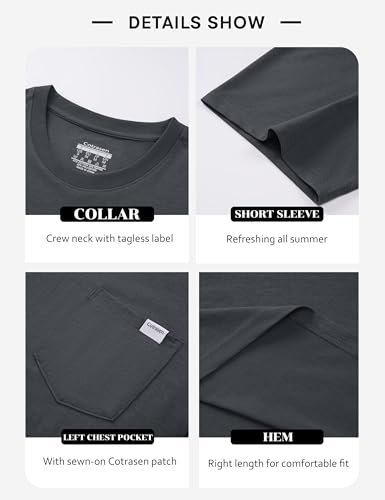 More information about Cotrasen Men's T-Shirts Short Sleeve Crew Neck Cotton Pocket Tee Shirts UPF 50+ Casual Drop Shoulder Loose Fit Tshirts