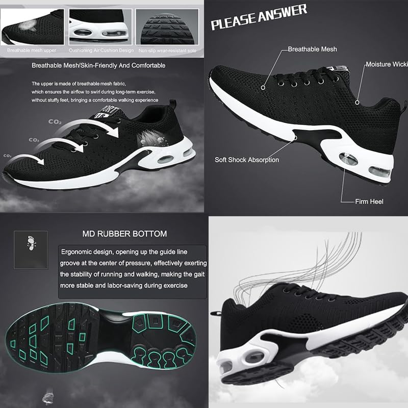 • Shock-Absorbing Air Cushion: The Incorporation Of A Dual Air Cushion Design Enhances Elasticity And Serves As An Effective Shock Absorber, Providing Increased Protection For Both Knees And Feet.Engineered Arch Support And Cushioning Heel That It Enhances Comfort And Safety,The Air Cushion Technology Provides You Long-Lasting Support With Each Stride.