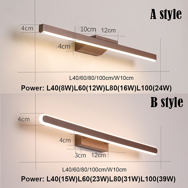 LED Mirror Headlights Coffee Colored Bathroom LED Modern and Minimalist Nordic Bathroom Household Mirror Cabinet Creative Dressing Table Makeup Lighting Fixtures AC110V AC220V 4