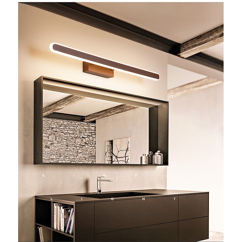 More information about LED Mirror Headlights Coffee Colored Bathroom LED Modern and Minimalist Nordic Bathroom Household Mirror Cabinet Creative Dressing Table Makeup Lighting Fixtures AC110V AC220V