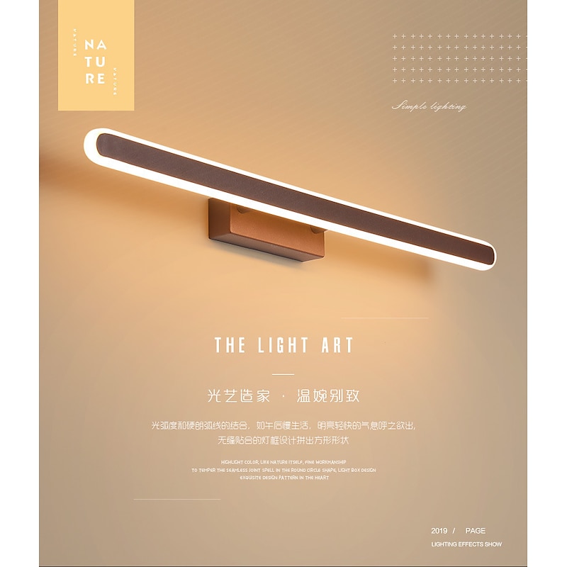 LED Mirror Headlights Coffee Colored Bathroom LED Modern and Minimalist Nordic Bathroom Household Mirror Cabinet Creative Dressing Table Makeup Lighting Fixtures AC110V AC220V 1