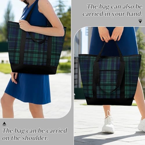 Scottish Tartan Plaid Shopping Bags Insulated Lunch Bag Shoulder Grocery Bags for Work Travel Beach 4