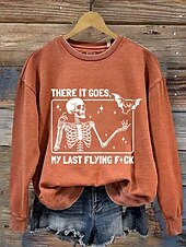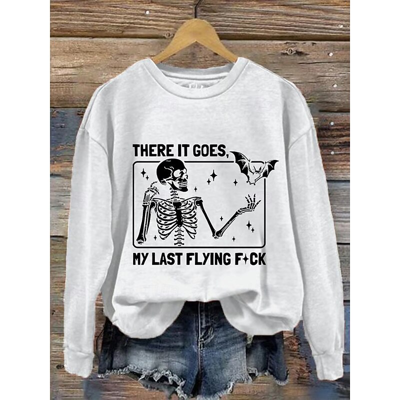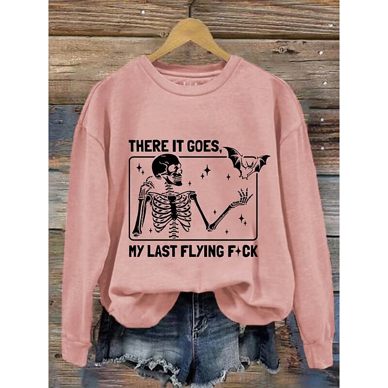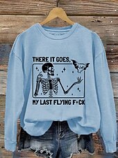 More information about Halloween Women's Pullover Sweatshirt Skulls Graphic Fashion Casual Long Sleeve Crew Neck Regular Tops Street Dailywear Casual Print Black White Pink Blue Orange Fall Winter