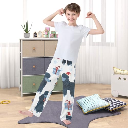 ZZXXB Christmas Poodle Snow Boys Long Pants Soft Trousers Elastic Waist Kids Lounge Bottoms with Pockets S-XL 6