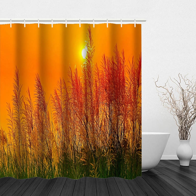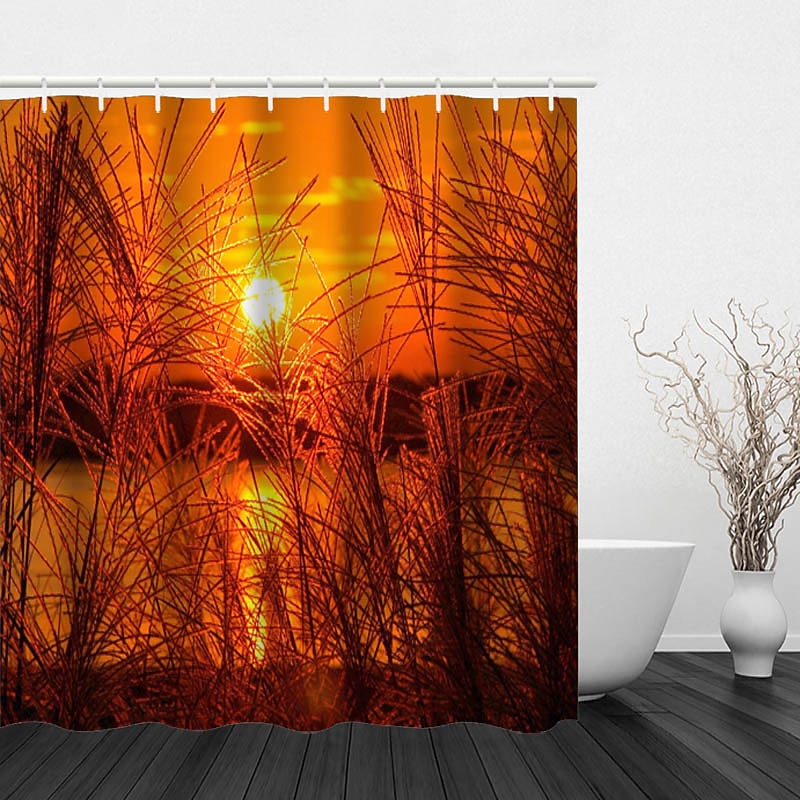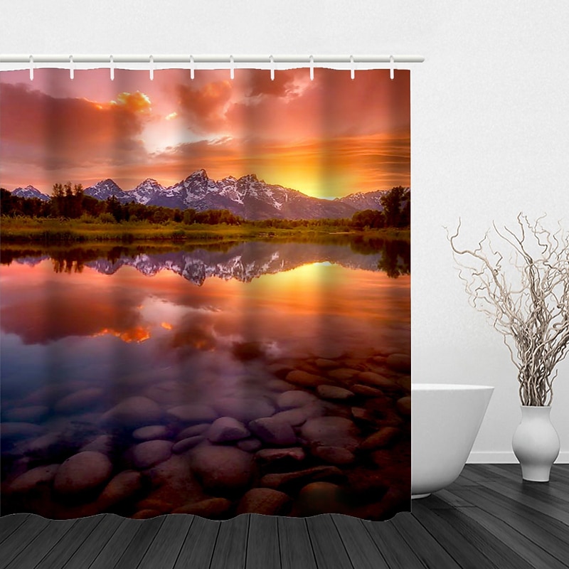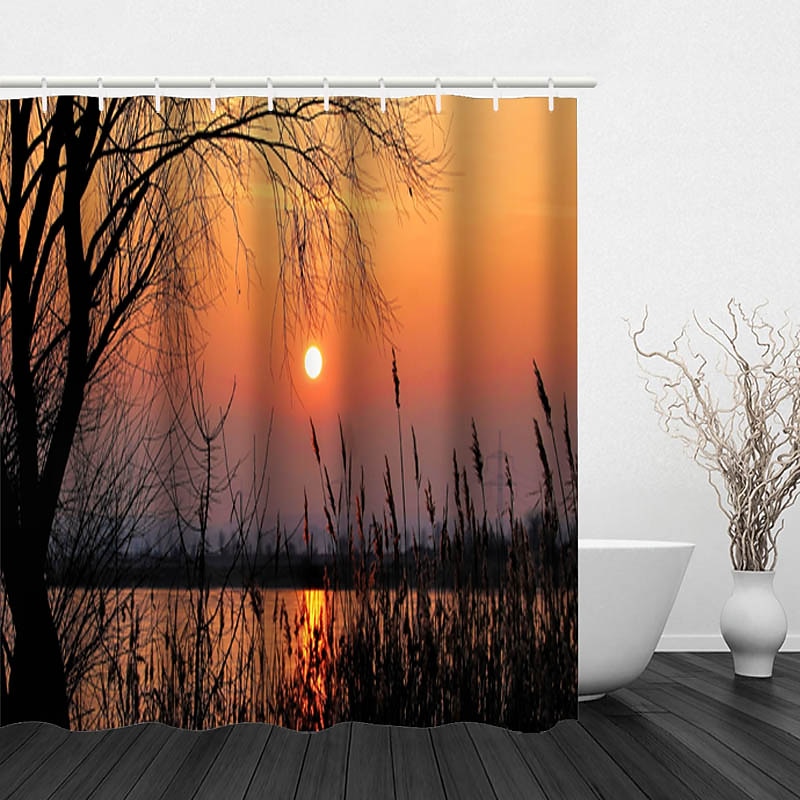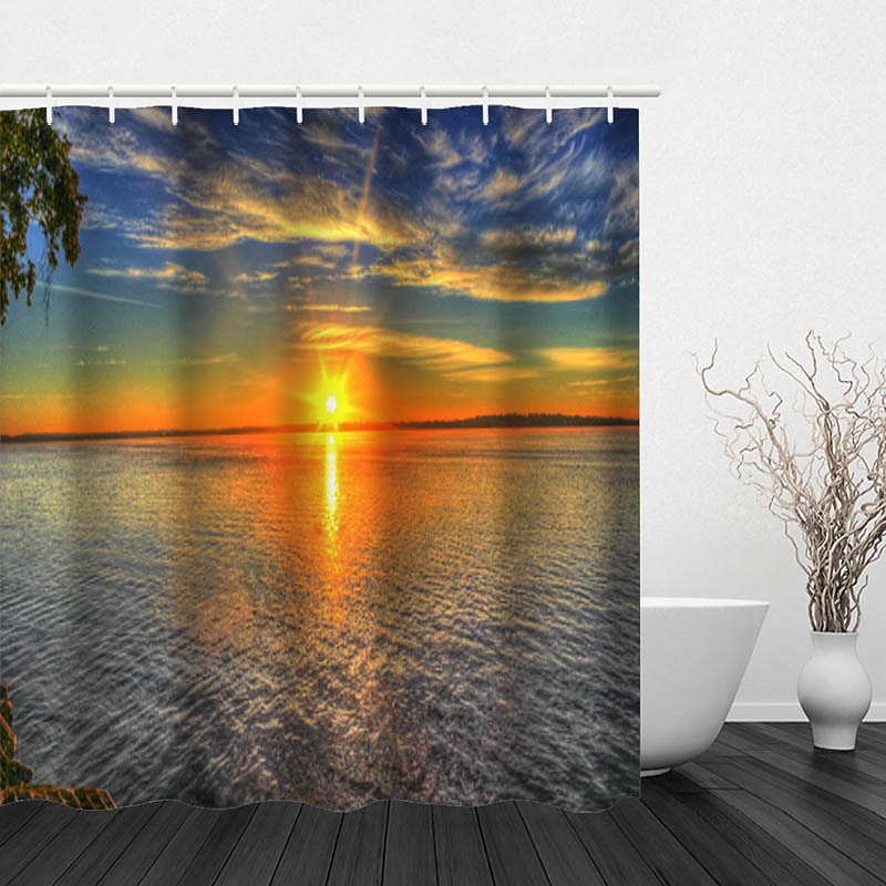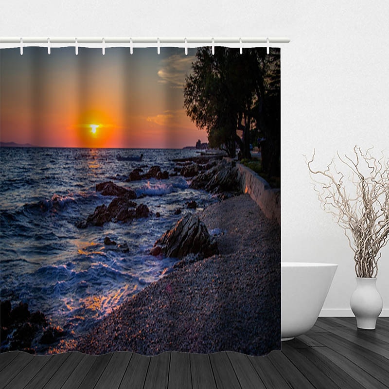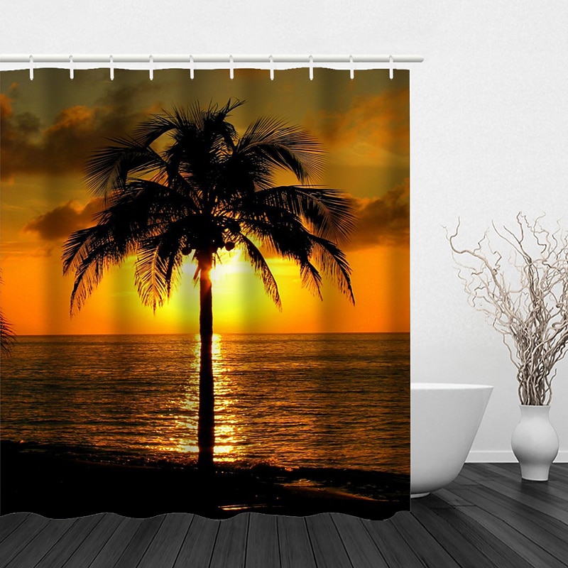 More information about Shower Curtain with Hooks 180cm*180cm(70"*70") Polyester Washable Waterproof Sunrise Sunset Sea Seaside Coconut Tree Pattern