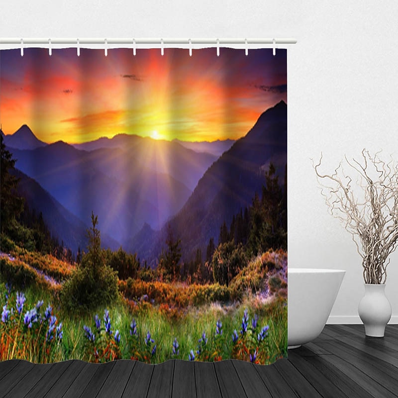 HOT ! Shower Curtain with Hooks 180cm*180cm(70"*70") Polyester Washable Waterproof Sunrise Sunset Sea Seaside Coconut Tree Pattern