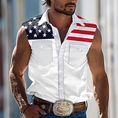 More information about Men's American / USA National Flag Shirt Western Shirt Cowboy Shirt Sleeveless Western Style Outdoor Party Summer Spring Shirt Collar White