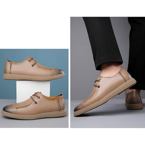 Men's Leather Lace Up Oxford Shoes,Fashion Business Casual Flat Dress Shoes Comfortable Slip On Walking Shoes 6